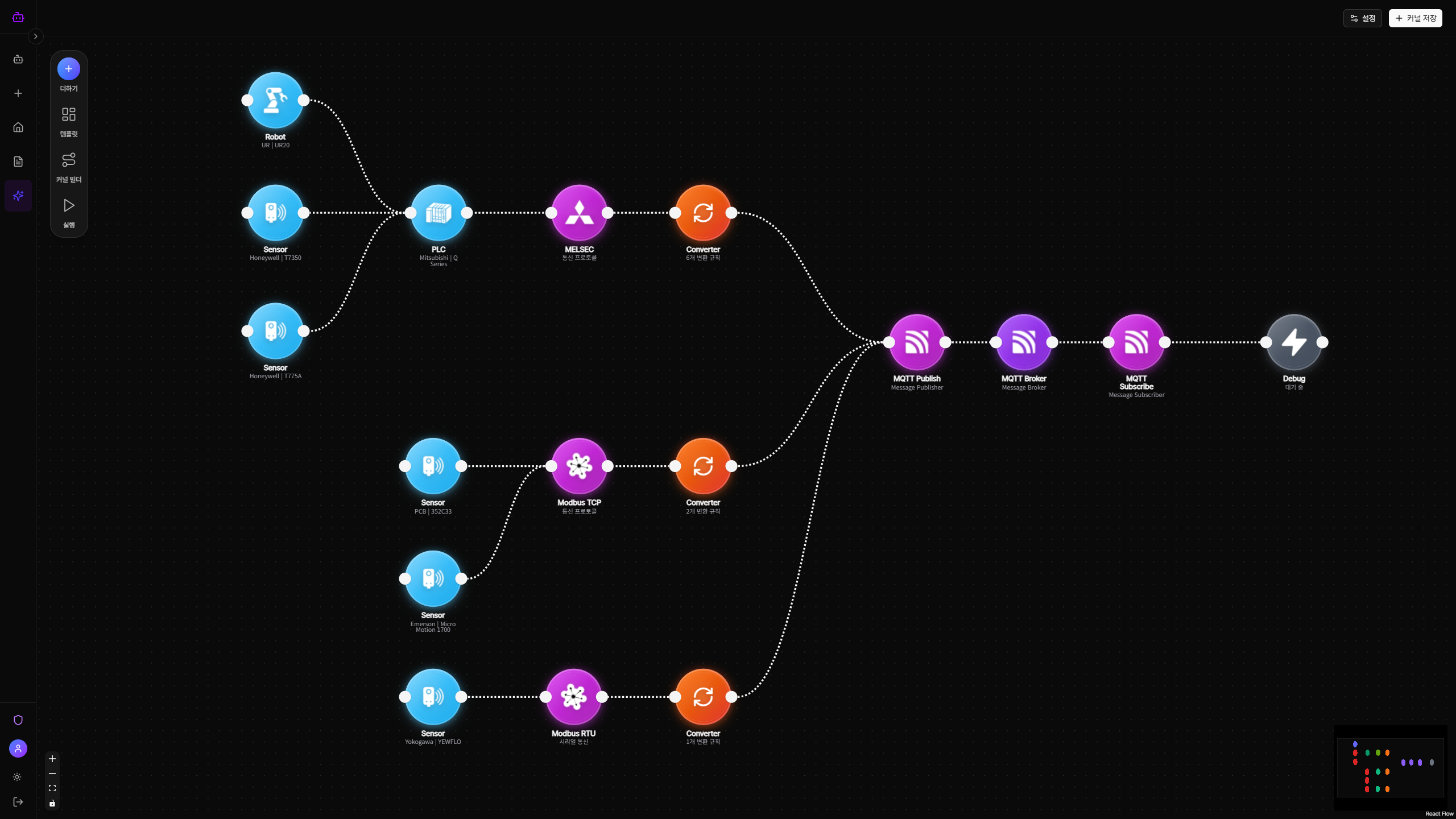 데이터 흐름을 설계할 수 있습니다. 복잡한 프로토콜이나 별도의 개발 작업 없이,