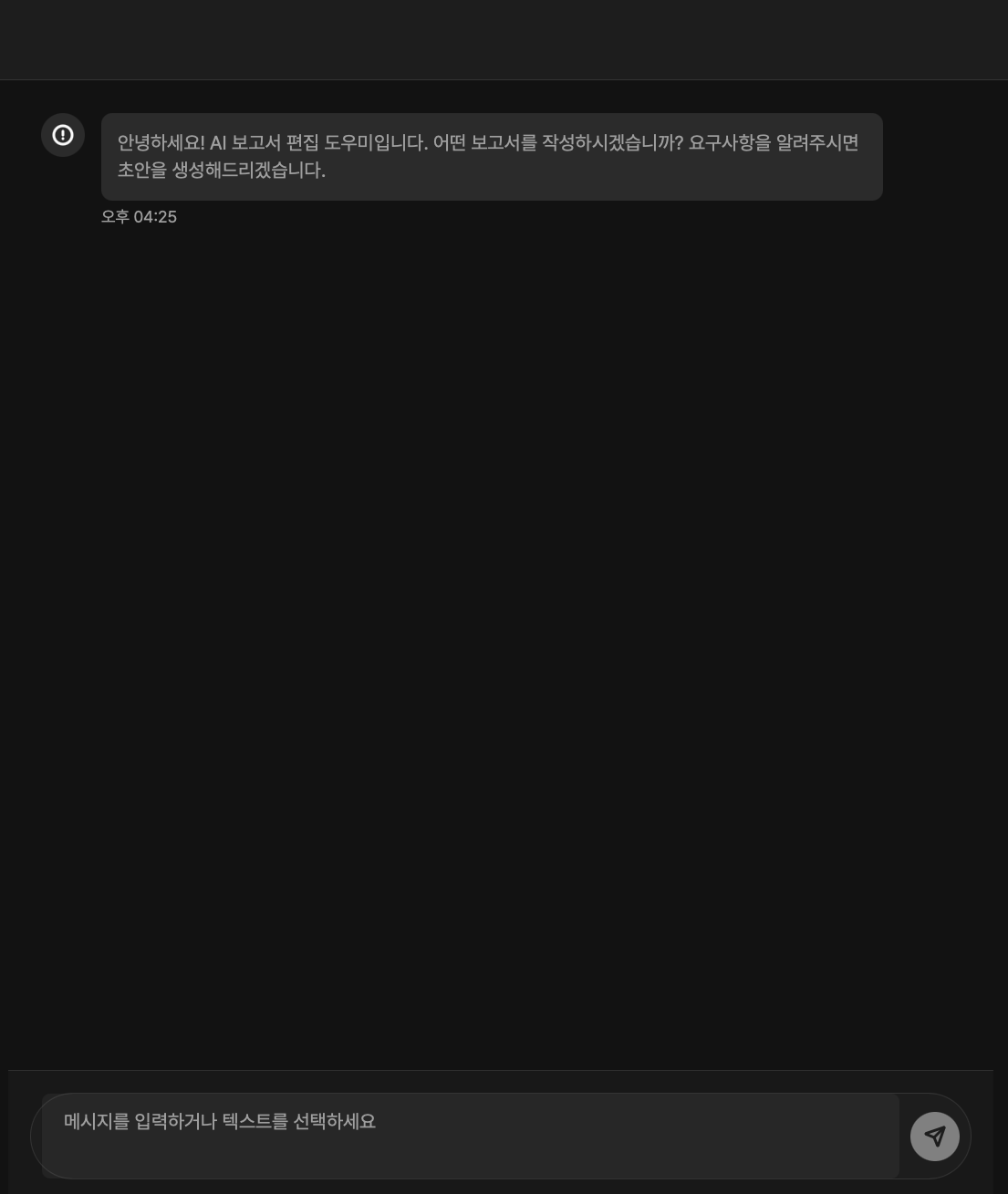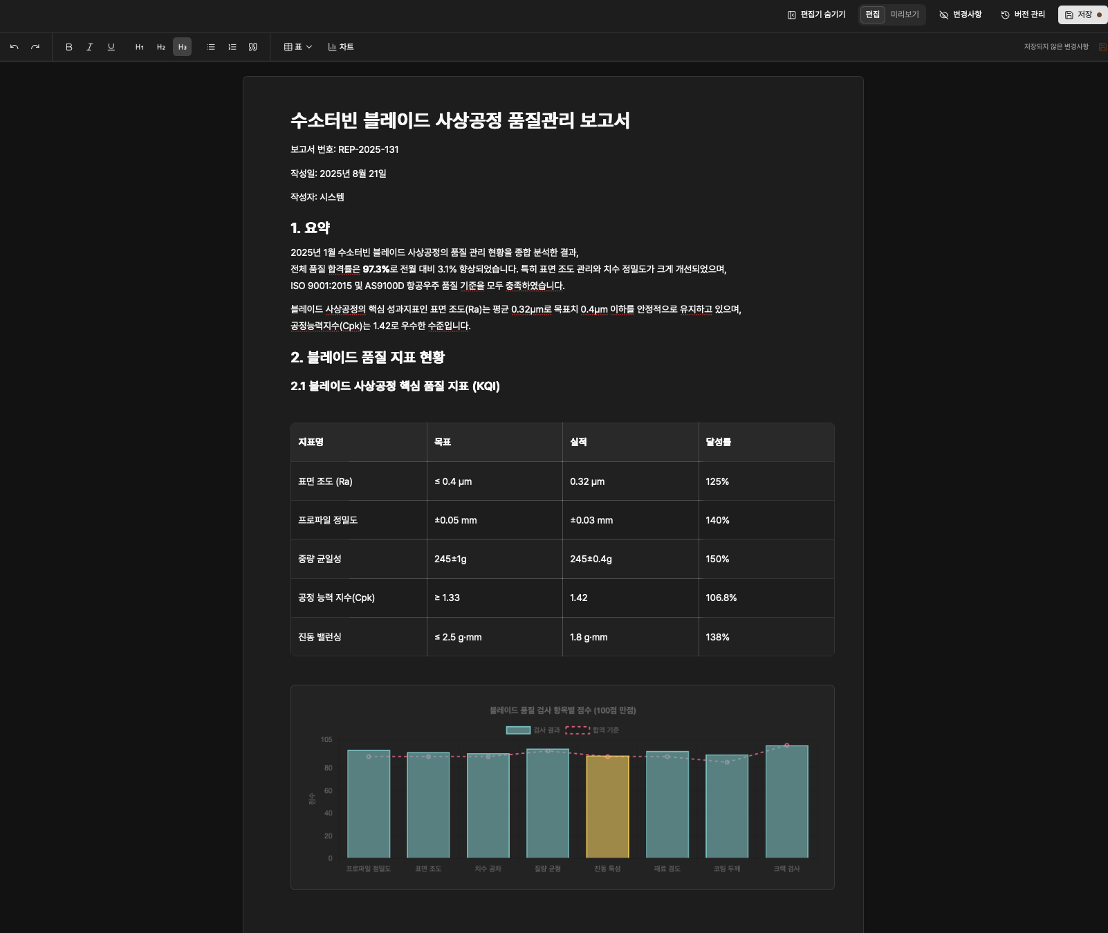 질문자의 의도를 파악해 맞춤형 분석 보고서 초안이 생성됩니다. 문서 편집기로 자유롭게 추가 편집이 가능합니다.
