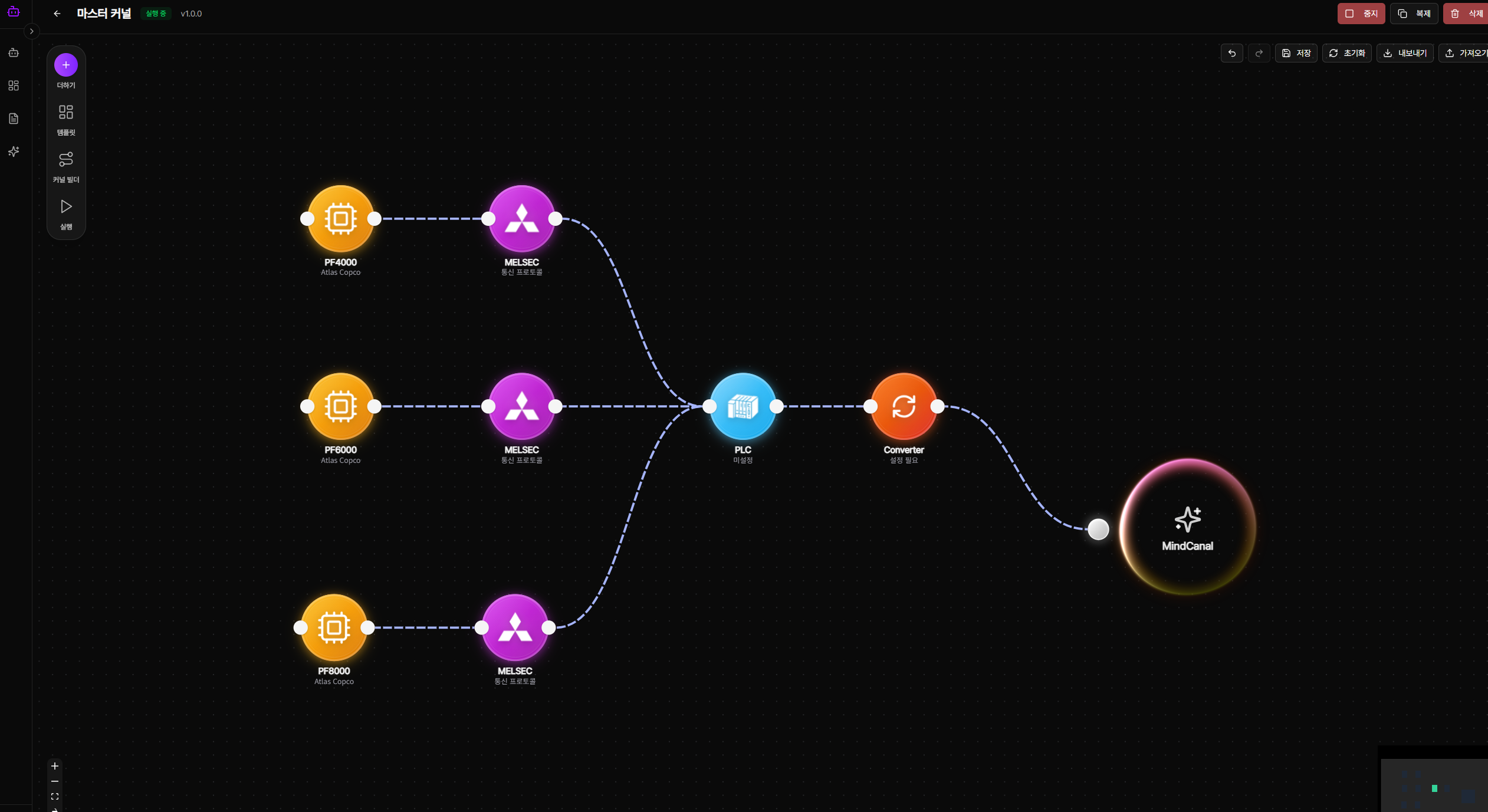 AI 예측, 이상 감지, 리포트 자동화까지 노드를 추가하며 유연하게 구성할 수 있습니다. PLC, MES, Slack, Excel 등 다양한 시스템과의 연동도 드래그 방식으로 간편하게 구현됩니다.
